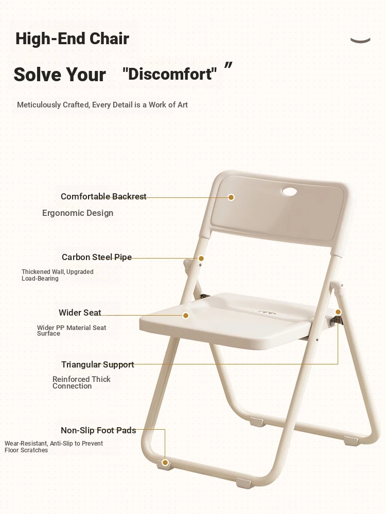 Ergonomic Folding Office Chair - Comfortable Study and Home Use Chair with Backrest, Perfect for Students and Workspaces