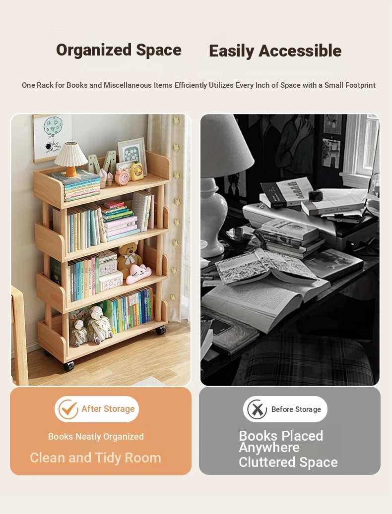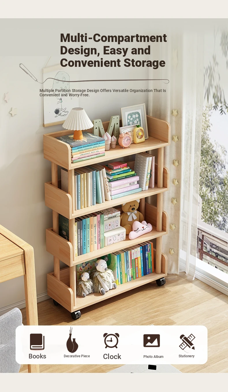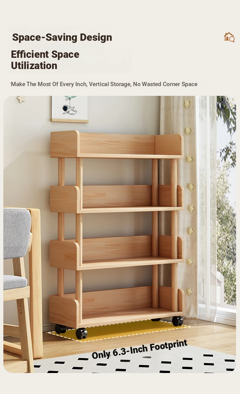 Space-Saving Children's Mobile Bookshelf - Floor Stand Storage Rack for Home and Students, Narrow Vertical Multi-Layer Bookcase, Easy to Move and Organize Your Books!