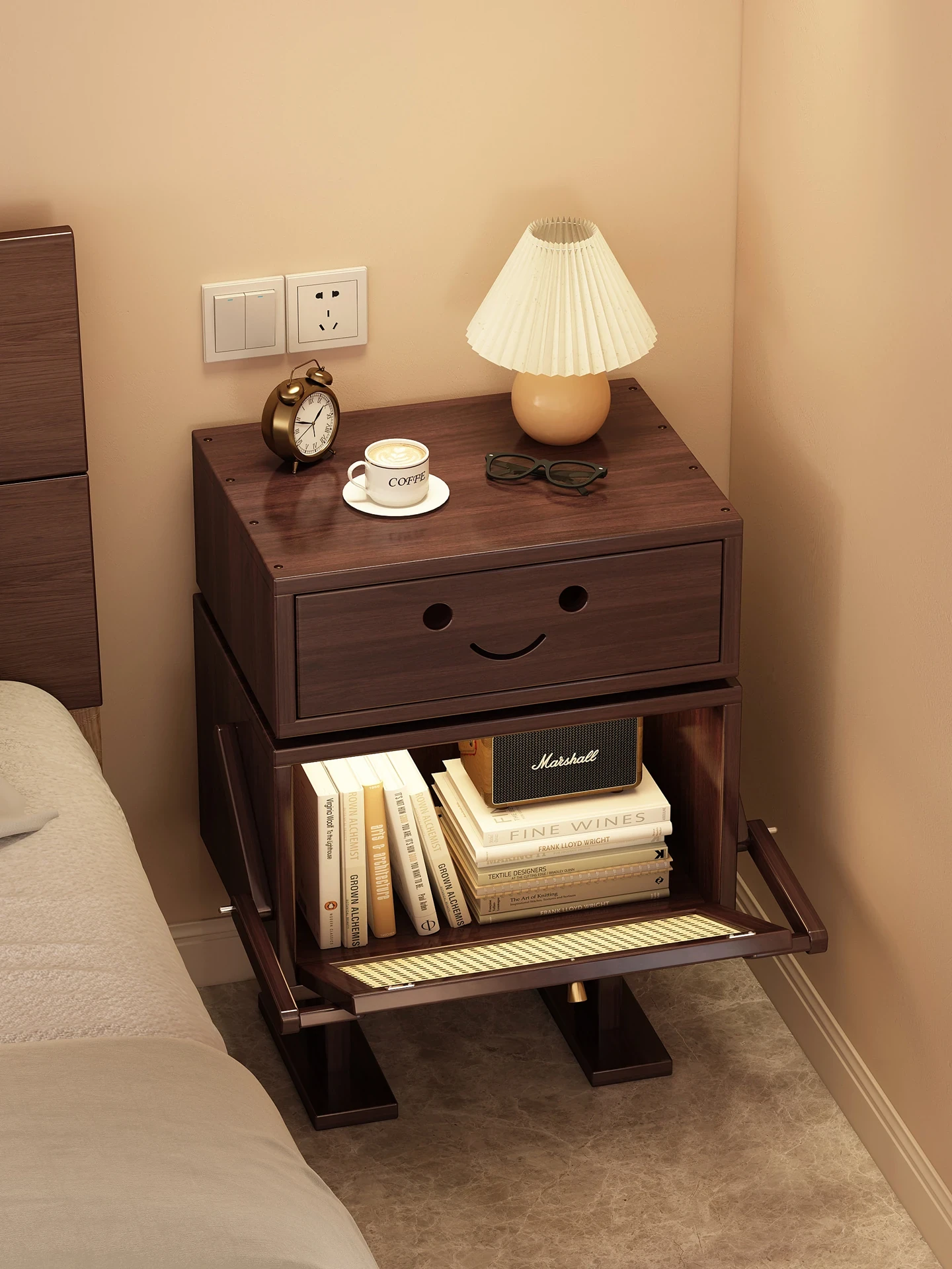 Solid Wood Bedside Table - Stylish Nightstand with LED Light, Perfect for Bedroom Storage and Organization, Compact Design for Space-Saving Solutions, Ideal for Robot Vacuum Access.