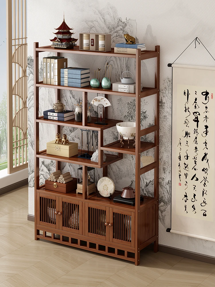 Vintage Style Floor Bookshelf - Nostalgic Chinese Antique Display Rack with Integrated Wall Support, Inspired by Song Dynasty Aesthetics