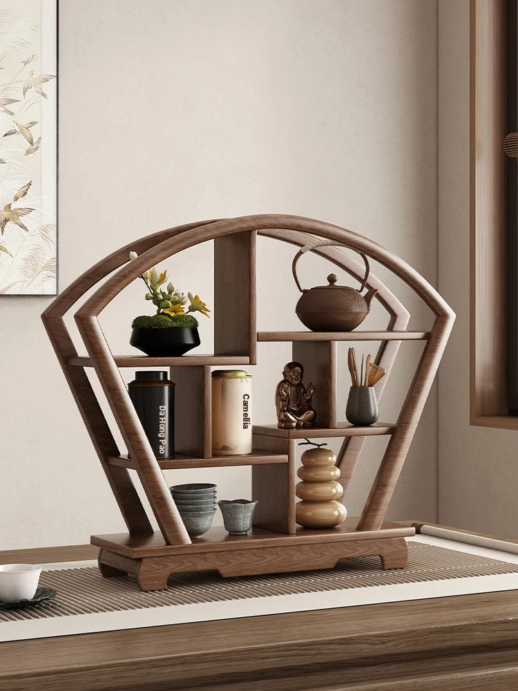 Elegant Desktop Teahouse Display Rack - Small Chicken Wing Wood Tea Table Storage Organizer for Teapots and Tea Sets, Perfect for Showcasing Your Yixing Teapots and Tea Collection