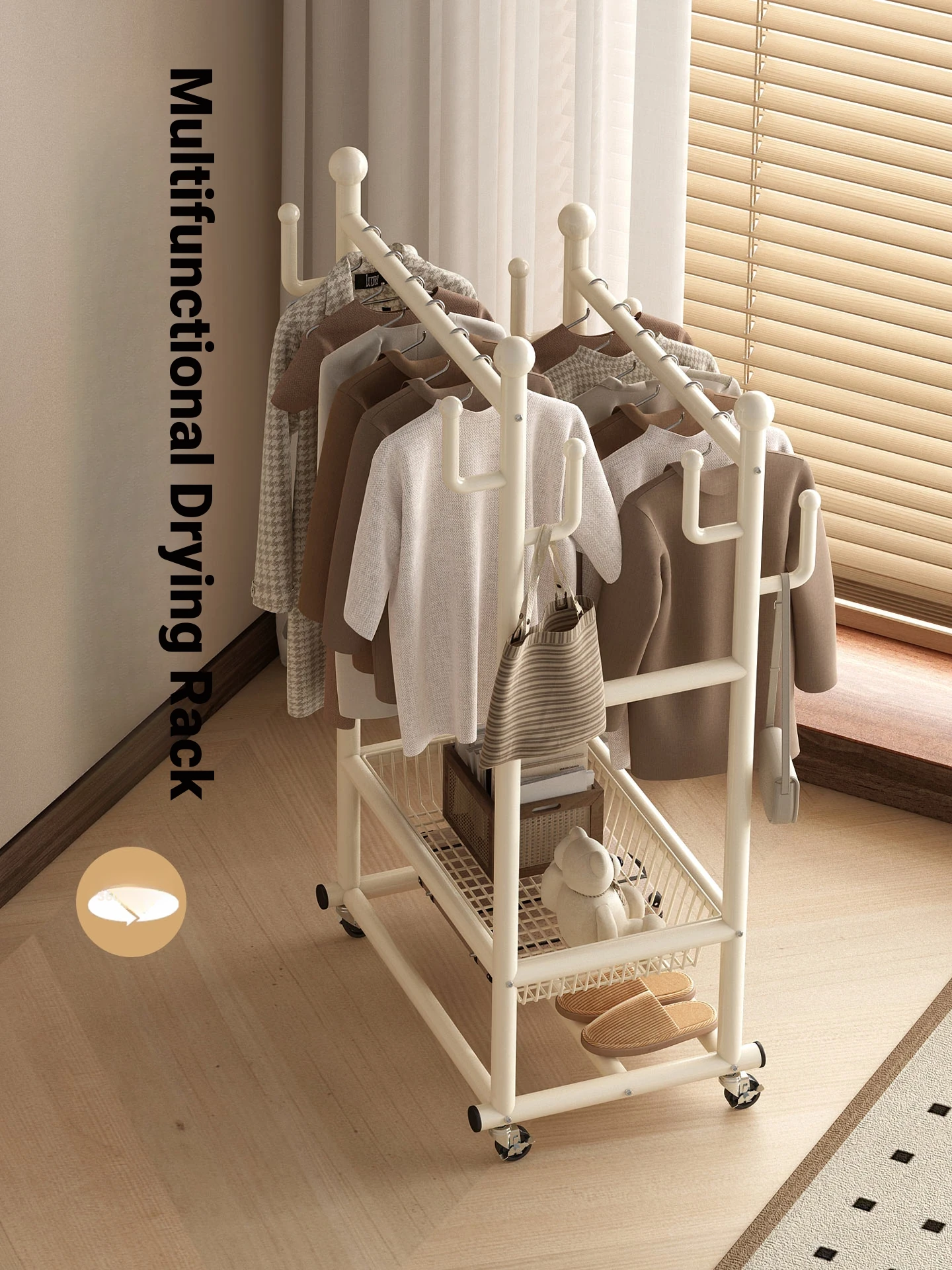Multi-Functional Floor Clothes Rack for Bedroom - Stylish Bed-End Storage Organizer & Mobile Drying Stand for Clothes and Hats - Perfect for Evening Use and Space-Saving Solutions
