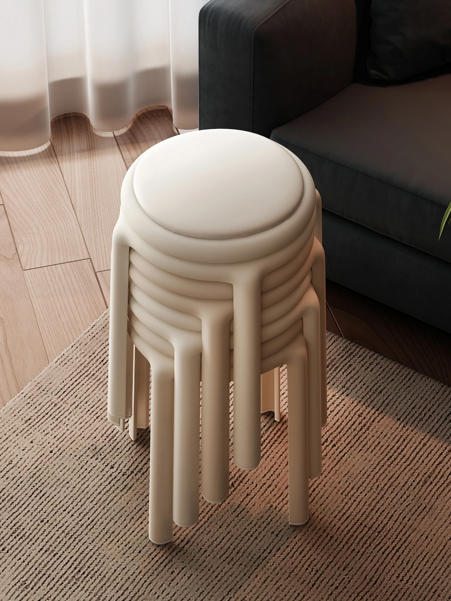Durable and Sturdy Plastic Stool with Soft Cushion - Stackable Round Design for Home Use, Perfect for Dining Tables and Extra Seating Needs, Space-Saving Storage Solution