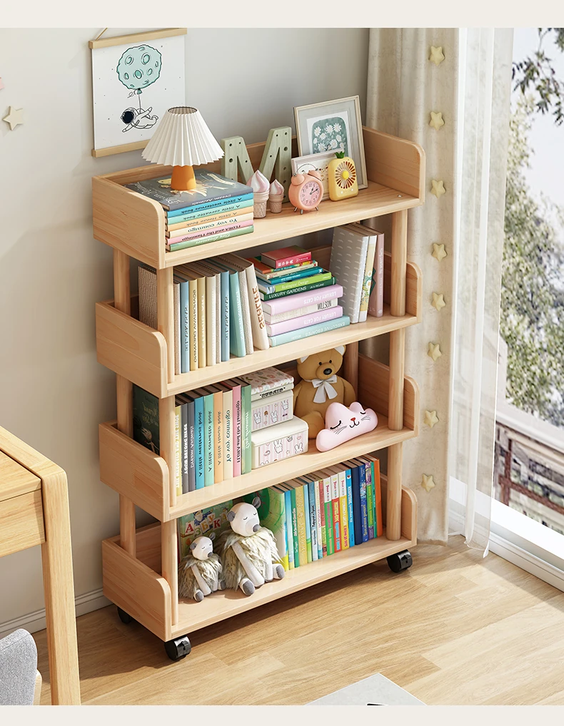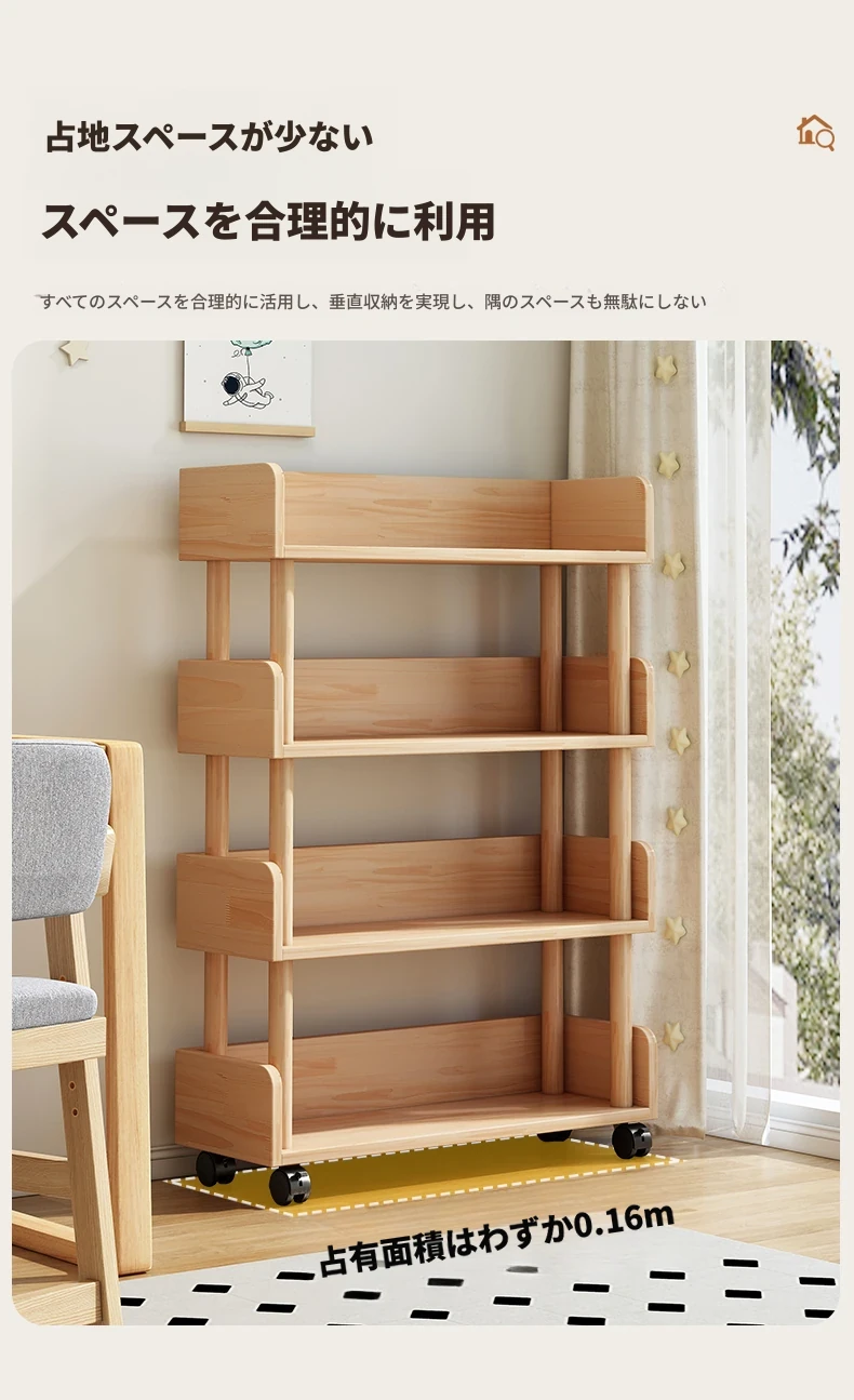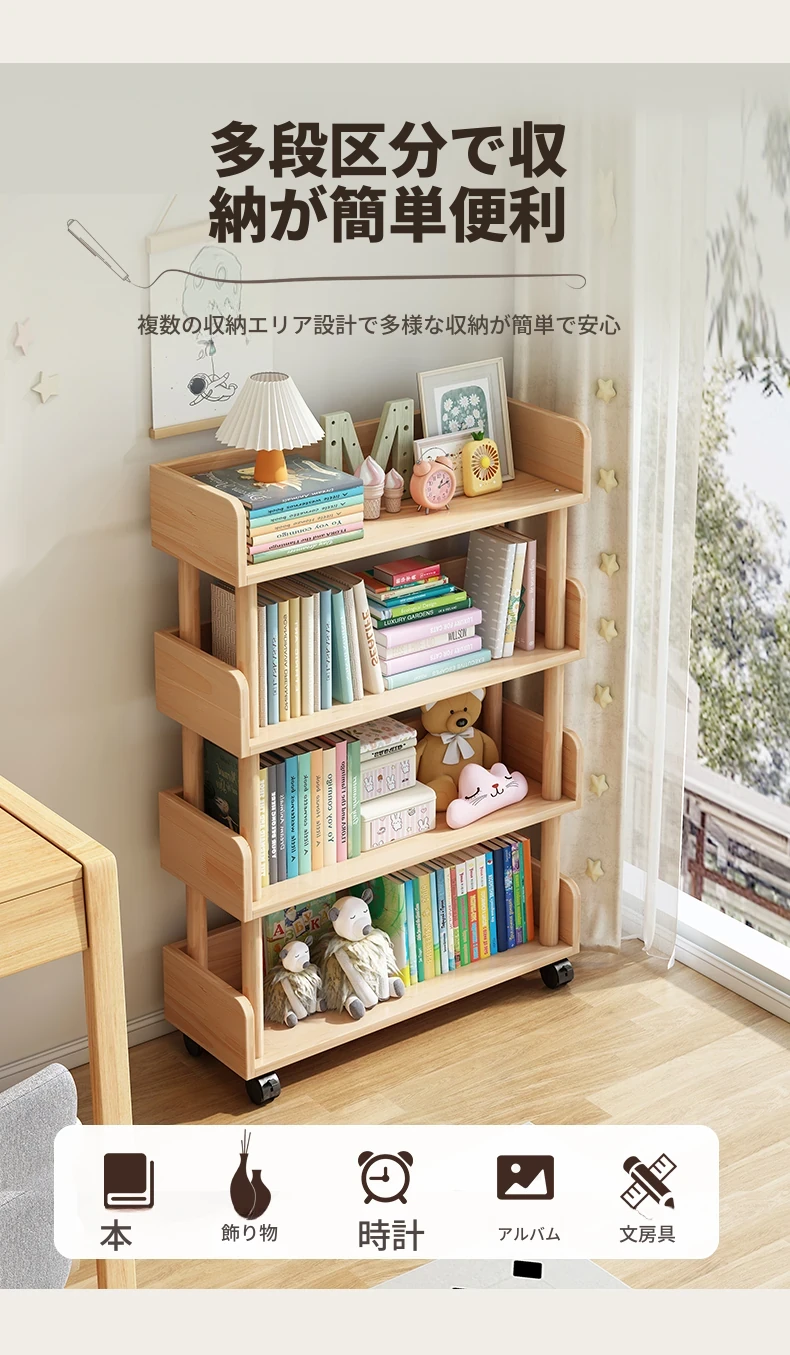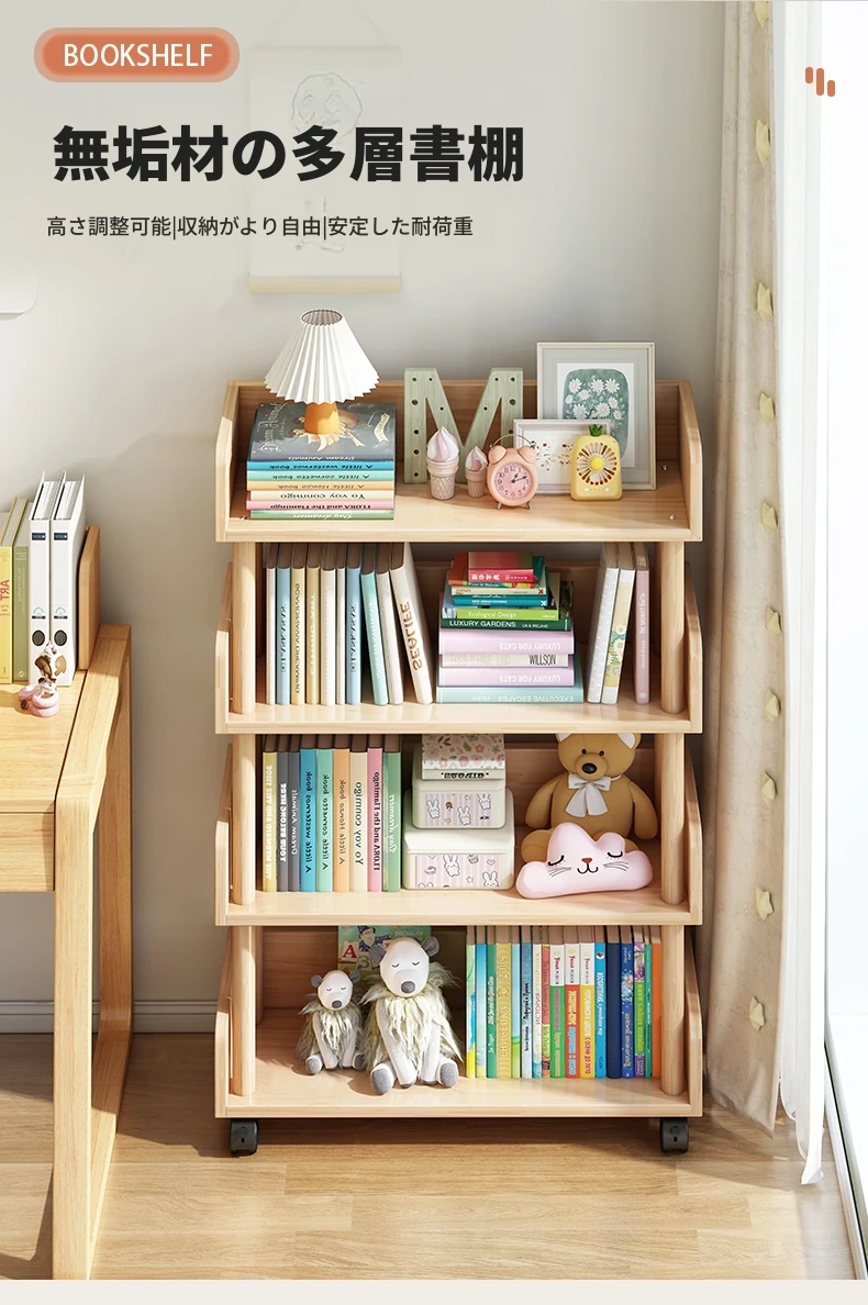 子供用移動式ブックシェルフ - スペースを取らずに使えるスタイリッシュな立て式多層狭型書棚!家庭や学生に最適な収納ソリューション。お部屋をすっきり整頓し、読書をもっと楽しめる空間を提供します!