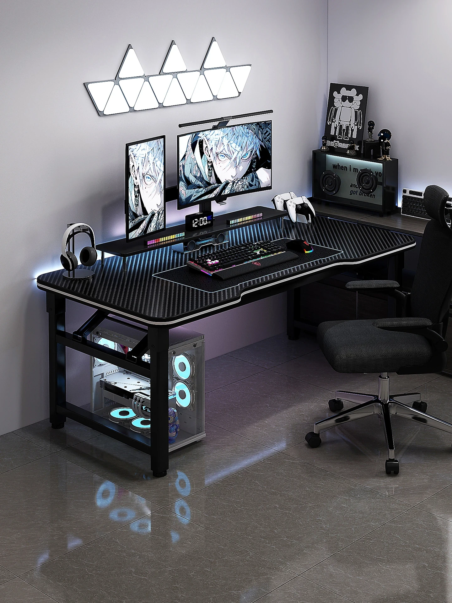 折りたたみ式ゲーミングデスク|簡単設置、メカアーム対応|自宅の寝室や書斎に最適なデスクトップPC用デスク!快適なゲーム環境を実現しよう!