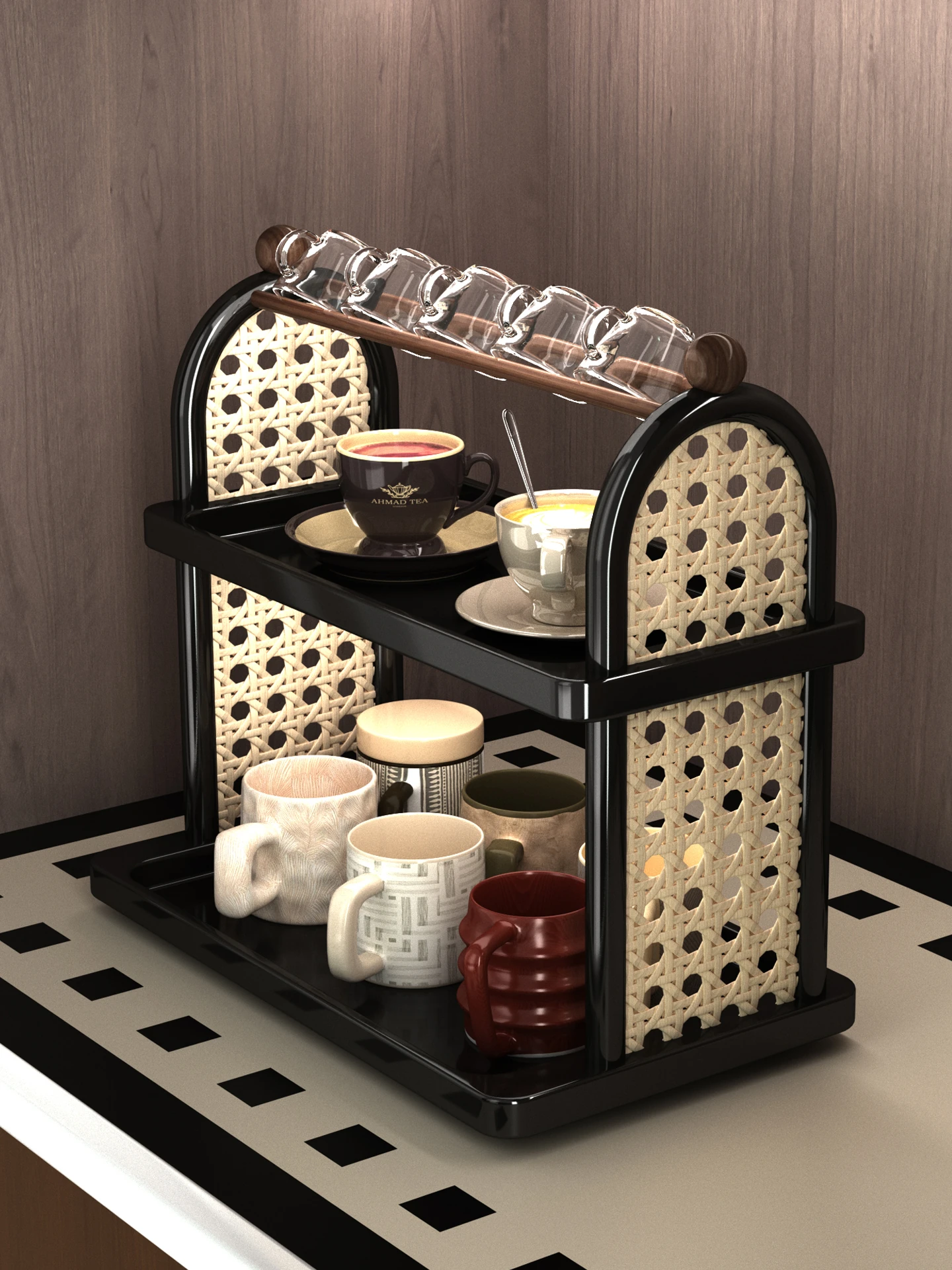 おしゃれなデザインのマグカップスタンド!ティーカップやコーヒーカップをスッキリ整理できる収納ラック。ダイニングやデスクにぴったりの水切り機能付き。あなたのテーブルを美しく整えましょう!