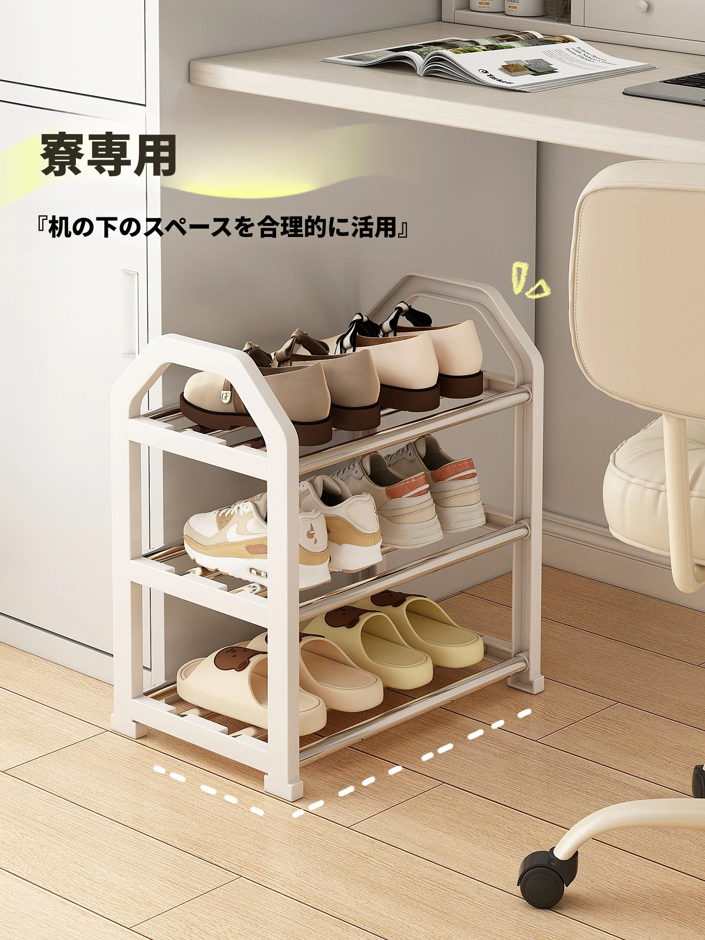 玄関やデスク下にぴったり!省スペース壁掛けシューラック - 寝室・寮向けのスマート収納アイテム!狭い場所でも使いやすく、おしゃれに靴を整理整頓!