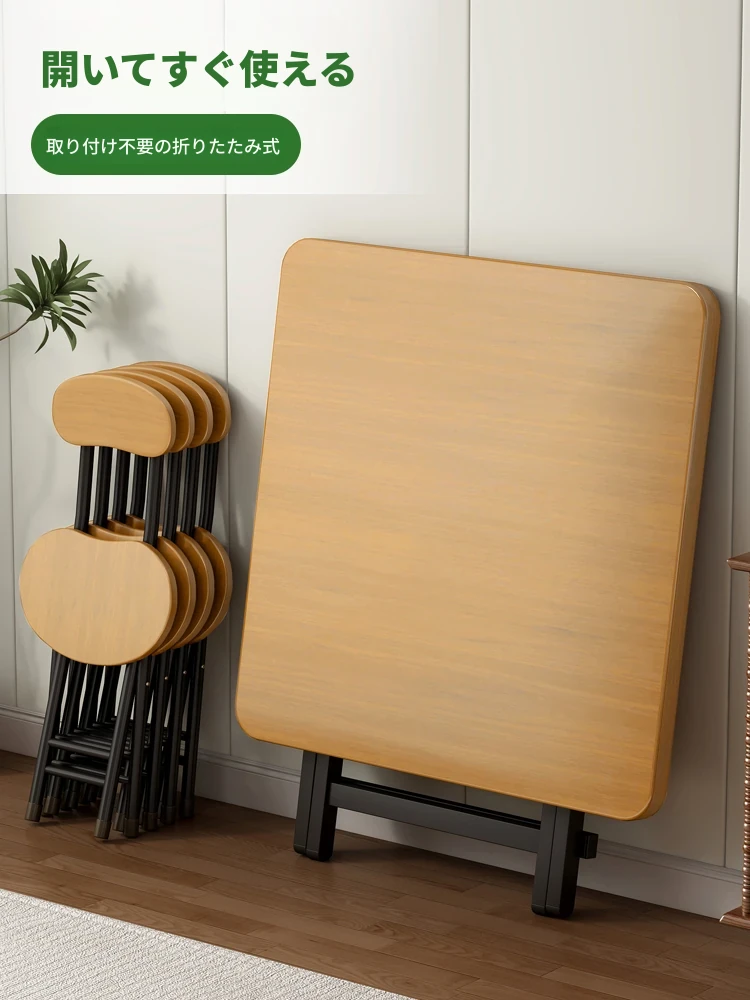 新型折りたたみテーブル|小型住宅やリビングに最適な、アウトドアにも使える便利な四角形デザインの食卓兼学習デスク!省スペースで使い勝手抜群!