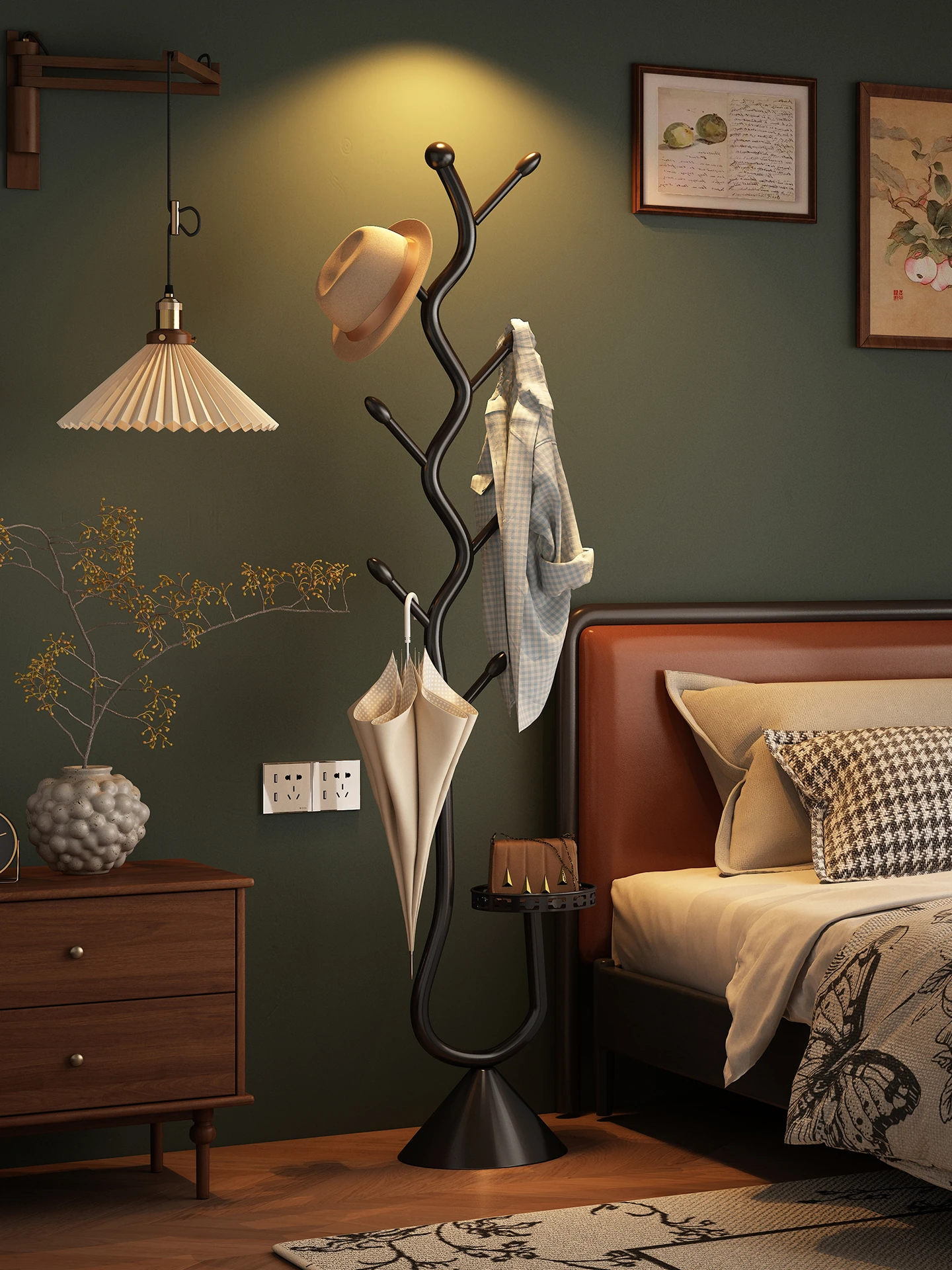 ベッドサイド衣類・帽子ラック一体型シンプルなフロアスタンド!アンティーク風のコンパクトデザインで狭いお部屋にもぴったり!おしゃれで実用的な収納を実現します。