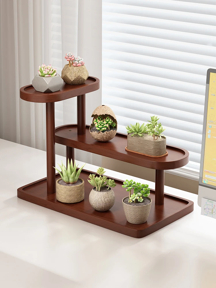 オフィスデスク用木製ミニグリーンスタンド - 寝室の窓辺や出窓にぴったり!多肉植物を美しく展示する花架けで、心地よい空間を演出します。