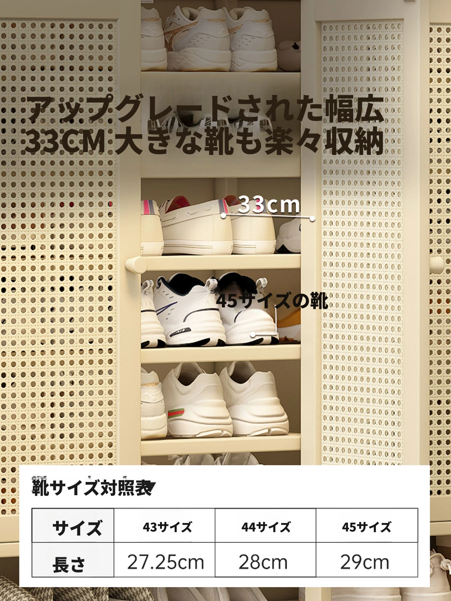 多層シューラック - 家庭用玄関・外廊下に最適な防塵シューズキャビネット!クリームカラーでおしゃれな靴収納、壁にぴったりフィットするデザインで、スッキリとした空間を実現します。