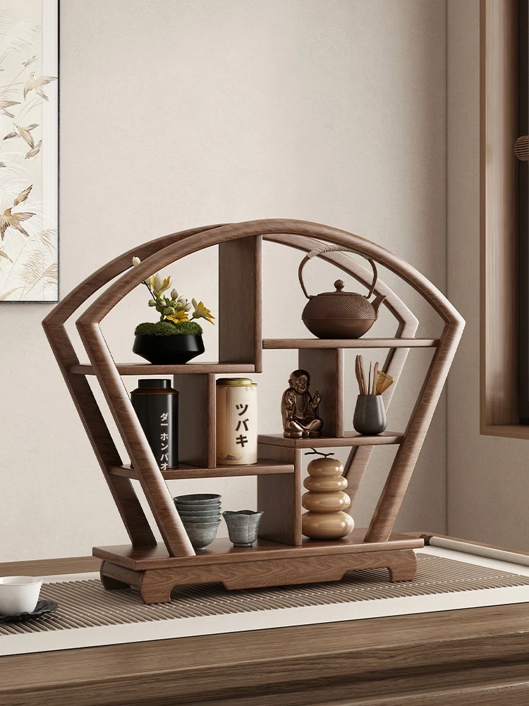モダンシンプルな置物棚 - デスクトップ用博古棚、紫砂壺や茶杯を美しくディスプレイできるフロアスタンドラック。おしゃれなティーセット用の収納スペースで、あなたのインテリアを引き立てます!