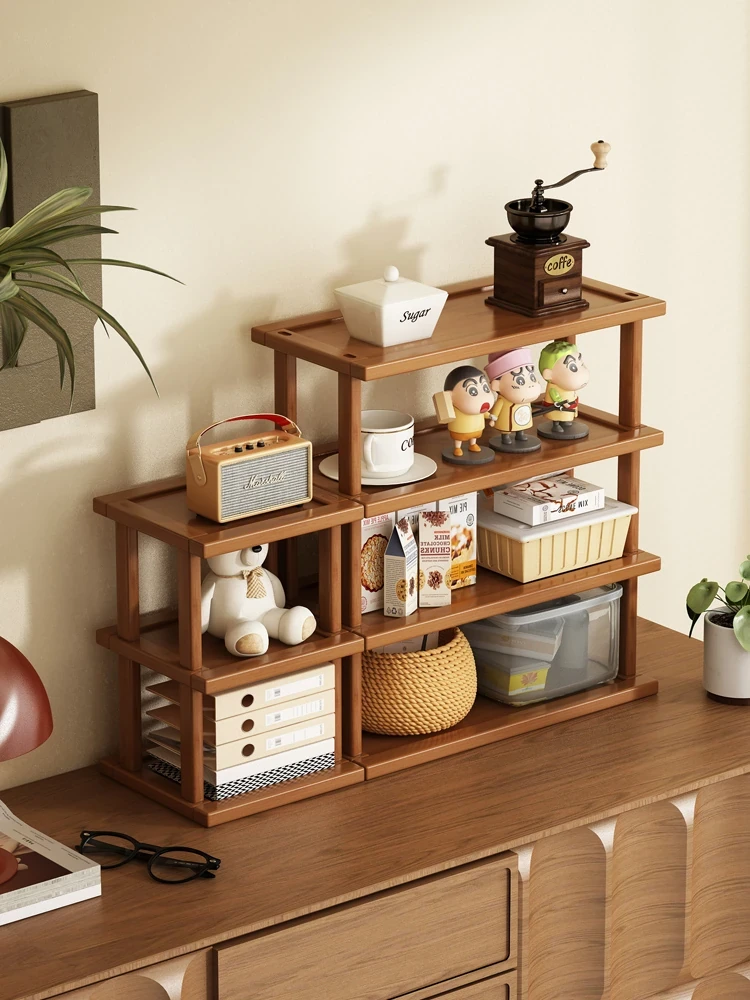 レトロなスタイルのフロア本棚 - 宋代の美学を感じるノスタルジックな置物ラック。壁に寄せて置ける一体型デザインで、アンティークコレクションを美しく展示!