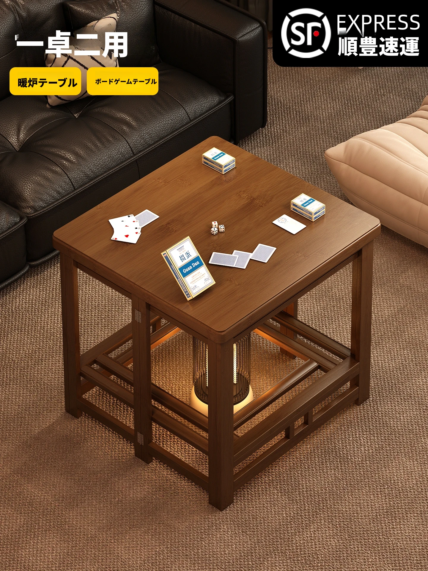 冬の暖かさを提供!折りたたみ式正方形火焚きテーブル - 快適な家庭用ヒーター、湖南の冬にぴったり!掼蛋やカードゲームを楽しむのに最適な四方テーブル。